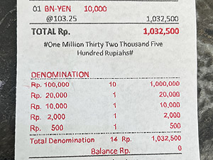 ¥10,000=Rp1,032,500と空港より 全然よかった!