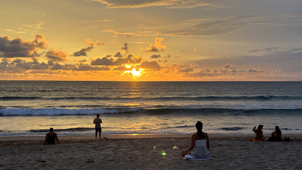 ビーチサイドのレストランで 夕日を見ながらの夕食タイム。 |