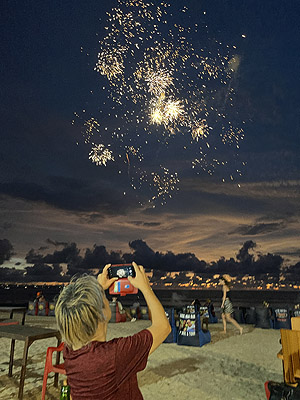 波打ち際の あっちこっちで、 花火が打ち上げられていた。