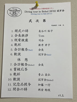 DIving tour Bali 25'11 の会計報告及びVTRの上映が行われましたが〜