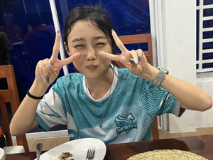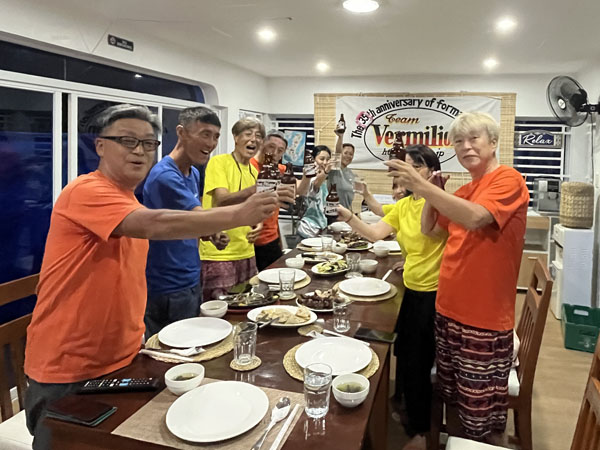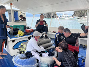 1本目潜り終わると、アポ島名物の Tシャツ売りのおばちゃんが乗船してきた。