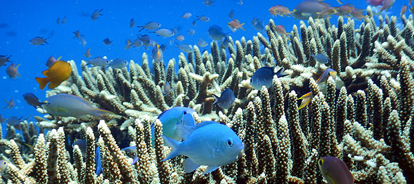 ハマクマノミ、デバスズメダイ、フエフキダイ、チョウチョウウオ、モンハナシャコ、カスミチョウチョウウオ、