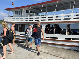 船は港に着き下船中。