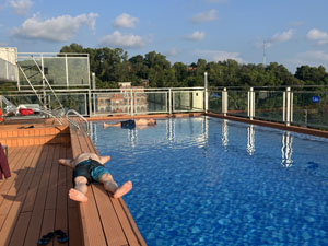 ホテルに戻ると、屋上のプールで一休み。