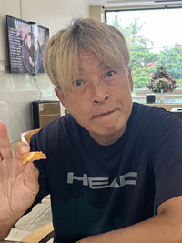 ここに座ってと、 | 中ば無理やり 靴を脱がされ ゴムが剥がれてると言い 瞬間接着剤で貼り始めた。