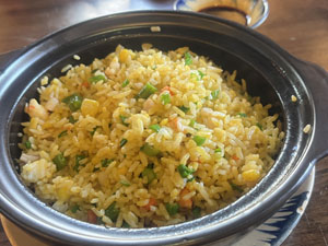 ベジタブルビザ VND199,000 エビと豚肉の揚げ春巻き VND149,000 シーフードチャーハン VND185,000