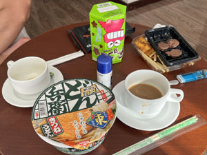 持参した食料を減らす為もあり 朝はカップ麺となった。