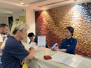 一旦 ホテルに戻って〜〜 レセプションで交渉中。