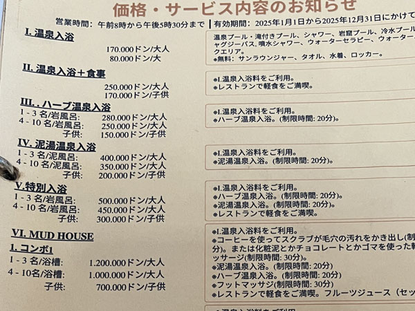 5番目の特別入浴VND500,000(¥2,875)をセレクトした。