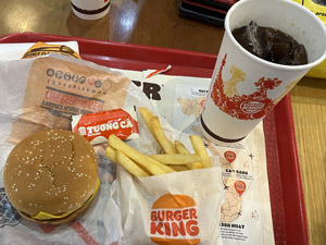 ホテルから戻ると、 最後の片付けをし出発した。 そして 軽く夕食。 (持参した食料減らし) |