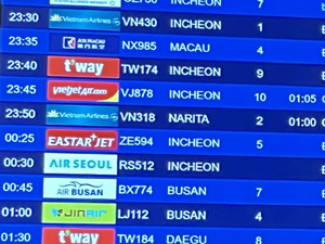 ダナン国際空港に到着してから 2時間弱 当初の出発時間の23時50分 掲示板は 2時05分に変わった。 更にあと2時間かぁ〜 |
