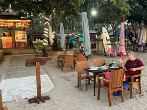 ビーチサイドのレストランで 夕日を見ながらの夕食タイム。 |