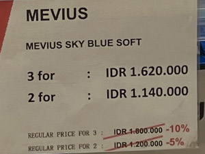 日本たばこのメビウスは、1カートンだとRp600,000(¥5,825)