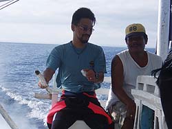 最初のポイントがカビラオ島なので、バンカーボートで1時間半程かかる。
