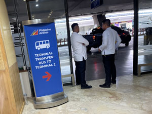 国際線のターミナル1から国内線のターミナル2に移動します。