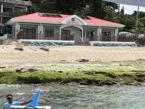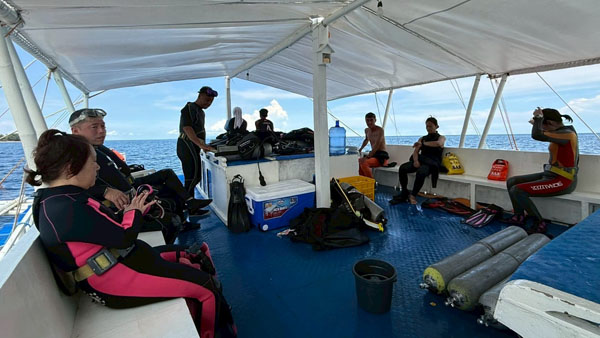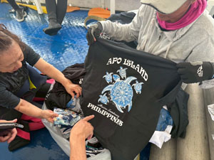 1本目潜り終わると、アポ島名物の Tシャツ売りのおばちゃんが乗船してきた。