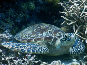 チョウハン、タイマイ、ハマクマノミ、アオウミガメ、