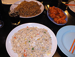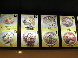 選んだ料理はこんな感じ 焼そば・チャーハンにトムヤム麺に エビチリと・・合計RM32(1000円位) ビールは大瓶2本でRM32でした。 |