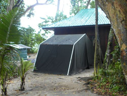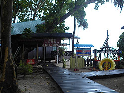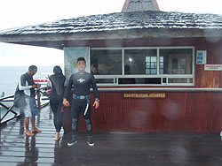 シバダン島の桟橋に着いた時には、既に雨が降り出した。