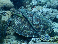 ハナビラクマノミ、ハマクマノミ、アオウミガメ、タコ、オオモンカエルアンコウ、沈ヨット、その他多数...