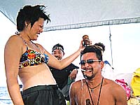 今回のツアーの話を日本でしている時 美香ちゃんがふと口にした "一度で良いからビールかけをしてみたい!" その言葉を聞いて、 セブでやってやろうじゃあないか・・・ と3ケースを持ち込んでのビールかけでした。 ただ、ビールかけの写真はこれしか無かった! |