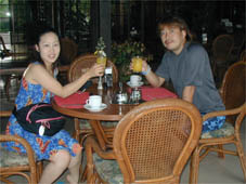 朝食中もなぜかドキドキ感が治まらず、ウェイターが2人の写真を撮ってくれるが、顔の引きつったままのボク。