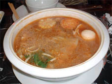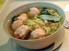 そして、ボクたちは歩くことにも疲れ果て、フードコートへ向かった。 | そこで、角さんお勧めのスープヌードルでも食べながら、落ち着くことに…。 さっぱりとしたスープで、確かに角さんが言うように沖縄そばに似ている。 しかし、角煮の入ったいわゆる『ソウキソバ』らしきものは注文できなかった。 だけど、二人が注文した、海老のツミレみたいなものが入ったものや、ワンタンみたいなものが入ったものも、さっぱり味で実に美味かった。