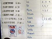 ホワイトボードには自分の名前とその横に1〜6本目の潜る番号を