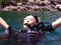 海の中は少々濁りもあったが、サンゴ類も豊富で魚影も濃いめの気がした。