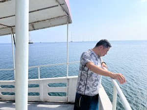 | 船に乗り込む。 |