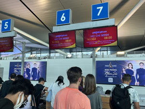 国際線ターミナルに移動し、 写真はベトジェットの チェックインカウンターです。