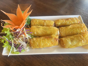ベジタブルビザ VND199,000 エビと豚肉の揚げ春巻き VND149,000 シーフードチャーハン VND185,000