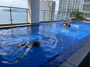 屋上のプールで塩抜き& 飲み直し〜〜!