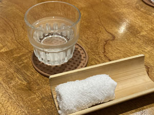 入店すると | いらっしゃいませ〜 冷たいお絞りとお水が出てきた。 日本って いいな!