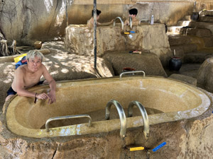 まずは この泥をシャワーで落として、次に 洞窟の穴的な神秘的な空間でのシャワー