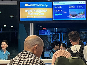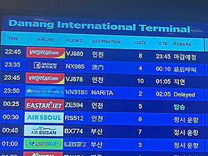 ダナン国際空港に到着してから 2時間弱 当初の出発時間の23時50分 掲示板は 2時05分に変わった。 更にあと2時間かぁ〜 |
